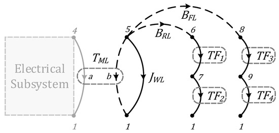 LG theory, evolved from Leonhard Euler’s graph theory, was first applied in engineering for the analysis of large electrical networks before being expanded to applications spanning multiple energy domains [7]. Before LG theory, the analysis of multi-domain systems was neither integrated nor unified, meaning that different physical domains were modeled separately without considering their dynamic interactions, and different (non-analogous) techniques were used for modeling each domain. While initial developments in LG theory focused on the primary energy domains (electrical, mechanical, fluid, and thermal), developments in additional domains, such as thermohydraulic [8,9], electrochemical [10], and multibody [11,12], started to emerge. While the recent work in the field of LGs is rather limited when compared with BGs, some research is being conducted on the application of LG theory for automatic design evolution [13].