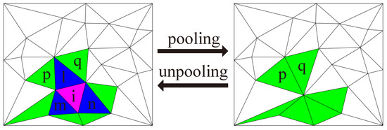 Finally, as a result of the reduction in the number of faces, it is necessary to index them and update again. If k of the next layer is more than four, we need to reconstruct . The collapse of faces may produce non-manifold faces, which we allow. However, non-manifold faces, and their surrounding faces, cannot participate in the next pooling.