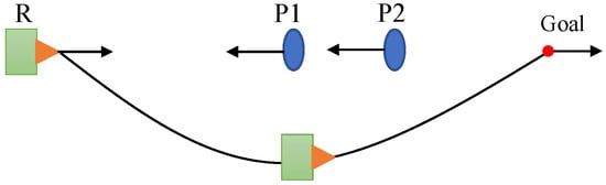 Service robots could often encounter humans when navigating through narrow spaces like corridors. The work [83] proposed a rule-based model to realize the smooth passing of a robot in such encounters. The proposed rule-based approach can be explained with the aid of Figure 14, where a robot encounters a human in a corridor. When the distance between the robot and the human is within the personal space (defined by Hall), the robot initiates a move to the right to a predefined lateral distance. After completing the passing, the robot returns to regular operation (i.e., moves toward the goal). Three lateral distances, 0.2 m, 0.3 m, and 0.4 m, were considered, and experiments found that the cases of lateral distances 0.3 m and 0.4 m have a higher user preference. The proxemic distance that initiates the movement to the right is also fixed to a predefined value. In other words, proxemic is not adapted.