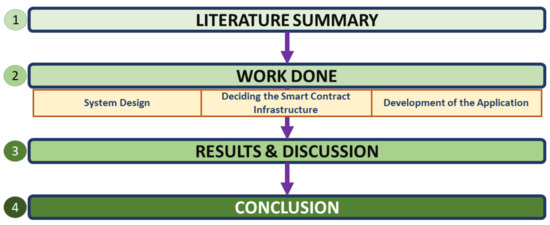 The study will first start with a literature review of the blockchain technology-based food tracking system. In the current situation, the application examples in the market will be examined, and the academic studies will be used to guide the food tracking system that is planned to be developed. After the application examples are examined, the stage of realization of the study will be started. Firstly, the design will be carried out in line with the requirements of the system to be established. Secondly, the infrastructure to be used in the system to be developed will be decided. Many alternatives in the market offer the smart contracts infrastructure that is the basis of the blockchain-based system we plan to develop. Determining the appropriate one is of great importance for the success of the study and not to get to a dead end. After the system design and the smart contract infrastructure to be used are determined, the development phase of the application will begin. With the developed blockchain-based system, the comparison of the performance data of the established blockchain-based system with other blockchain infrastructures and the food tracking system without the blockchain layer will take place. Afterward, the implementation of the system in real-life will be performed and the results will be discussed. Then, the study will be concluded. The detailed methodology is given in Figure 1.