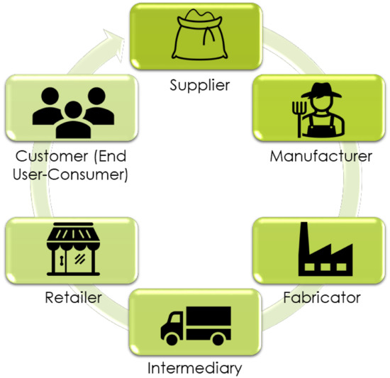 When the whole process is examined, seeds and supplement materials are purchased from suppliers, processed by the producer, and turned into products, then wholesaled in factories and delivered to retailers through the distribution chain. Finally, it is offered to the end-user, that is, the consumer. When the whole process is evaluated, it is seen that it can be constructed as a six-party system in total (Figure 2).