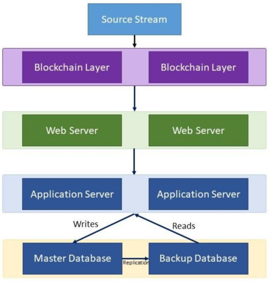 When the studies in the literature are evaluated, it is seen that food tracking systems are managed in 4 layers. These are source streaming, web server, application server, and database layers, respectively (Figure 4).