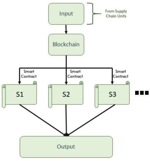 After the data received from the supply chain units are passed through the blockchain layer, smart contracts are created, and all transactions are executed and tracked through smart contracts. The data obtained from the output of the process are sent to the internet layer for distribution. After that, it is propagated to the end-user to view the output of the system (Figure 7).