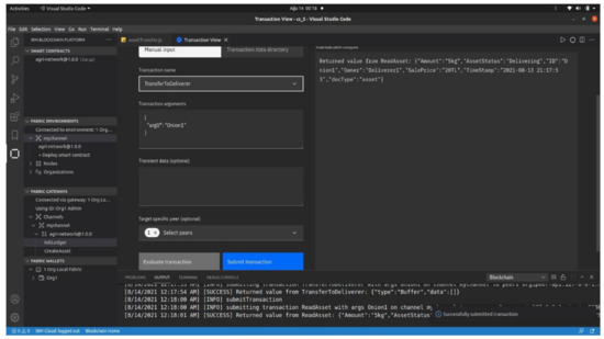 A smart contract structure that works in line with the system flow determined by using the VS Code interface was obtained. A sample smart contract screenshot over the developed application is seen in Figure 12.