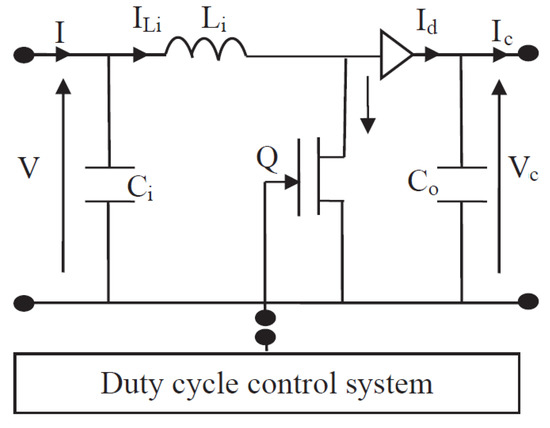The structure of the utilized converter in continuous conduction mode (CCM) is shown in Figure 3 and is described by the following equations.