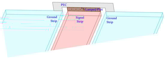 Each transition was divided into N segments, and each segment is designed to achieve a 50 Ω impedance. The separation between the signal and ground strips was recalculated for each segment to maintain the impedance. These dimensions were used in calculating the separation using MATLAB. The GSG probe connection was modelled using a perfect conductor boundary that connects the two ground strips with the excitation applied as a lumped port integrated across the ideal conductor to the signal strip, as shown in Figure 11.