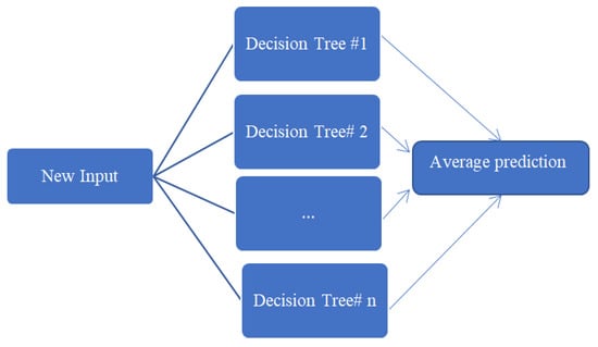 The average prediction of n decision trees in a random forest prediction model.