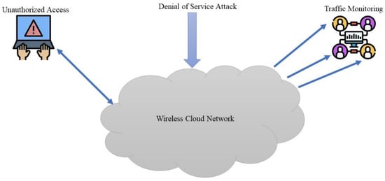 - Kadhim, A.N.; Sadkhan, S.B. Security Threats in Wireless Network Communication-Status, Challenges, and Future Trends. In Proceedings of the 2021 International Conference on Advanced Computer Applications (ACA), Maysan, Iraq, 25–26 July 2021. [Google Scholar]