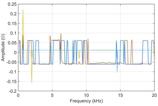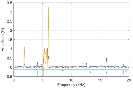 The tests carried out on a 2 × 25 kV 50 Hz railway line in Italy [13] provide a large set of curves, with various degrees of differences, thus allowing a test of FSV characteristics under a range of conditions (see Figure 1). It may be observed that all curves are similar at low frequency, and then begin to separate at some kHz.