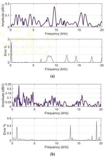 There is a significant degree of variability in the derivatives and a general sensitivity to the data range, which obviously depends on the problem nature, with the data being, for instance, large impedance values (e.g., railway pantograph impedance values [13,28]), near-unity reflection coefficients (as provided by scattering parameters of cable harness, transmission lines, and connectors), or very small electric field values (as is common in electromagnetic emissions measurements caused by electronic devices, power converters, and electrical machinery [29,30,31]), to give some examples. As such behavior was observed in the preliminary tests, additional verification of the suitable data pre-conditioning and derived indexes, with more general validity, was carried out.