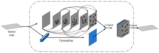 In addition, we found that in the feature extraction network, due to the stacking of convolutional layers, the receptive field would gradually increase, and the resolution of the feature map would decrease, with insufficient detail information. This makes it impossible to obtain the best results of feature map resolution and receptive field at the same time. To get rid of this dilemma, this paper proposes the context information extraction module (CEM). After obtaining the feature maps of the first few layers through the feature extraction network, we input them into CEM. CEM uses dense connections to extract the feature maps of different receptive fields by using the dilated convolution [12] of 3, 6, 12, 18 and 24 for the input features, and introduces deformable convolution for each connection, and deformable convolution is introduced for each connection to ensure that CEM can learn and transform different features from given data [13]. In addition, in order to fine-merge multi-scale information, we use a densely linked approach in CEM, where the output of each extension layer is connected to the input feature map, and then the input to the next extension layer. By means of dense linking, we obtain better multi-scale features. The CEM structure is shown in Figure 4.