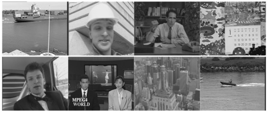 For objectivity of the experimental results, eight well-known video sequences (i.e., foreman, carphone, salesman, news, container, coastguard and city) in QCIF format (176 × 144) are used for simulation. The video sequence can be accessed on the website of the YUV Video Sequence [31]. The eight selected video sequences are rich in variety, including rapid motion, slow motion, complex texture and simple texture. In this paper, the luminance component of the first 100 frames of video is used for experiments.