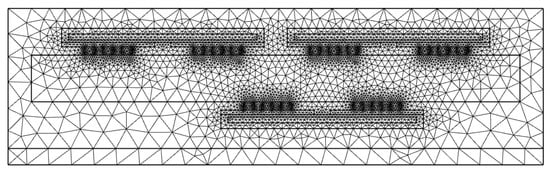As illustrated in Figure 4, the model of the device is meshed, in which the physics-controlled mesh is selected as the sequence type and the mesh size is fine so as to balance the calculation speed and accuracy.