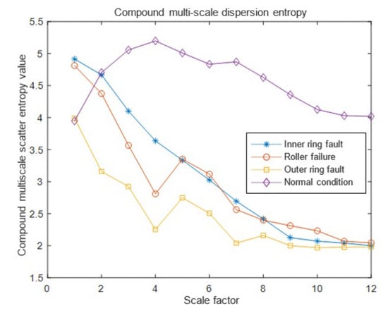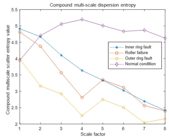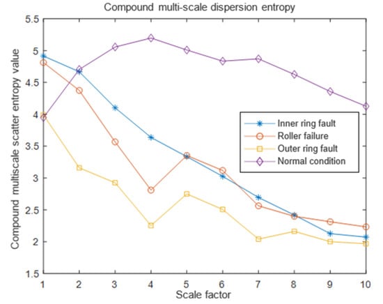 Step 4: The composite multi-scale dispersion entropy of the reconstructed four signals is calculated.