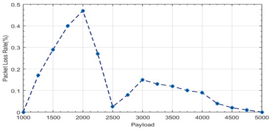 The effectiveness of the SRLNC algorithm for efficient data transmission over a multipath channel was assessed in terms of throughput while varying payload (samples per generation), packet loss rate, throughput with link loss variation and need for redundant packets, etc. The proposed SRLNC algorithm applies a Galois field of size 8 that enabled it to time as well as the computation efficient. Typically, higher redundant packets enable more accurate decoding at the receiver, however, at the cost of added computational overheads. Considering it, SRLNC was tested with one and two redundant packets per generation and relative performance was obtained (Figure 4). Initially the number of redundant packets was considered as 1, and the generation size was fixed at 10. Considering practical UWSN, where there can be continuous variations in the link quality to assess SRLNC, throughput was examined by varying link loss probability. We applied the Gilbert Elliot Model to generate the link loss pattern. The throughput of SRLNC was obtained for different link loss probability (0.0025, 0.005, 0.0075, 0.01, 0.0125, and 0.015). Figure 4 presents the throughput of the SRLNC algorithm. The data packet loss due to continuous payload increase is given in Figure 5. The results signify that throughput varies as per payload; however, SRLNC exhibits satisfactory output. Figure 6 presents the throughput variation as per change in the link loss pattern. Considering a practical environment, where, with increase in link loss, the throughput decreases, and result affirms the same.