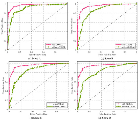 Since we adopted the divergence-based domain adaptation method CORAL, in order to verify the effect of this method on our study, a comparative experiment was specially designed. Figure 9 shows the ROC curves of Wi-CAL and Wi-CAL without CORAL.