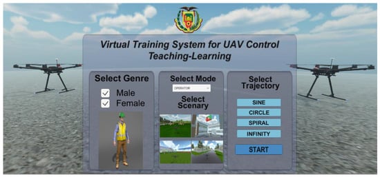 The following document consists of six sections. Section 2 describes the structure of the virtual environment and the methodology that relates the teaching–learning process. Section 3 describes the UAV used, including its mathematical modeling. Section 4 explains the control scheme together with a kinematic and a dynamically compensated controller. Section 5 presents the results obtained from experimentation and simulation, as well as the percentage of usability of the virtual training system. Finally, Section 6 contains the conclusions of the application of the virtual environment.