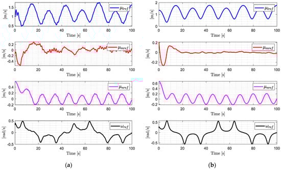 For the kinematic controller, the behavior of the position control errors are analyzed by considering a velocity tracking under ideal conditions, that is . Replacing Equation (4) in (1) we obtain the closed-loop equation . For the stability analysis we consider a candidate Lyapunov function defined negative . Finally, by considering the time derivative of the candidate function and replacing it in the closed-loop equation, we obtain: