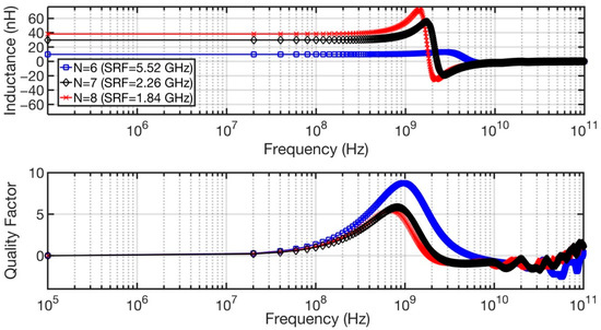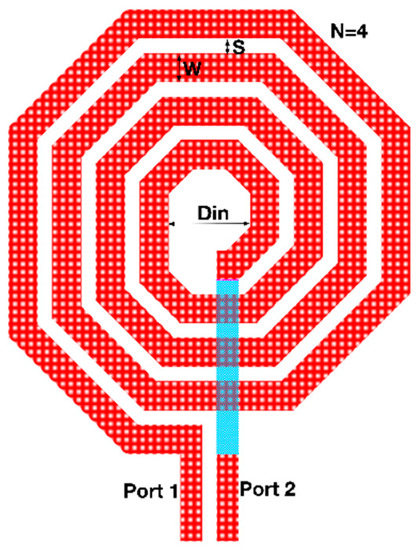 - Lopez-Villegas, J.M.; Samitier, J.; Cane, C.; Losantos, P.; Bausells, J. Improvement of the quality factor of RF integrated inductors by layout optimization. IEEE Trans. Microw. Theory Tech. 2000, 48, 76–83. [Google Scholar] [CrossRef]