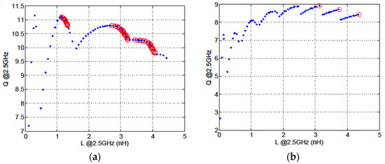 - Gonzalez-Echevarria, R.; Roca, E.; Castro-López, R.; Fernández, F.V.; Sieiro, J.; López-Villegas, J.M.; Vidal, N. An automated design methodology of RF circuits by using pareto-optimal fronts of EM-simulated inductors. IEEE Trans. Comput.-Aided Des. Integr. Circuits Syst. 2017, 36, 15–26. [Google Scholar] [CrossRef]