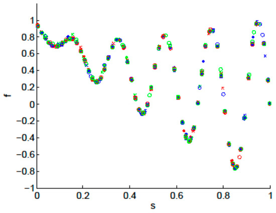 The algorithm proposed in Section 4 was applied to the mathematical benchmark problem described above using a population of 100 individuals along 200 generations. The results of nine different executions are shown in Figure 12. It can be clearly seen that the algorithm consistently provides good approximations of the desired SPF.