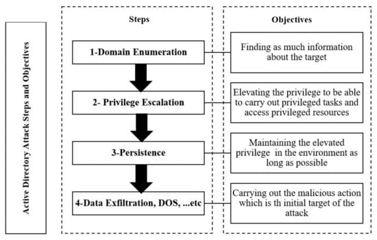 - Metcalf, S. Red vs. Blue: Modern Active Directory Attacks, Detection, & Protection. Available online: https://www.blackhat.com/docs/us-15/materials/us-15-Metcalf-Red-Vs-Blue-Modern-Active-Directory-Attacks-Detection-And-Protection.pdf (accessed on 10 September 2021).