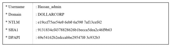 - Dimov, D.; Tzonev, Y. Pass-the-hash: One of the most prevalent yet underrated attacks for credentials theft and reuse. In Proceedings of the 18th International Conference on Computer Systems and Technologies (2017), Ruse, Bulgaria, 23–24 June 2017; pp. 149–154. [Google Scholar]