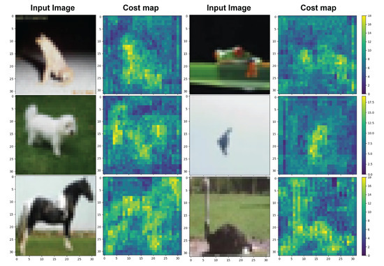 To visualize and assess the amount of computation per spatial location of the SG module, ponder cost maps were adopted, as presented in DynConv [45] and SACT [44] in Figure 5. The dark region in the cost map indicates a small amount of computation, and the bright region implies a considerable amount of computation. The results show a difference in the amount of computation between a complex image and a simple image as the SG module extracts spatial-wise features from the images. In addition, although only a subset of the channel was used, it can be seen that it is sufficient to determine the effective regions by identifying the spatial features of the image.