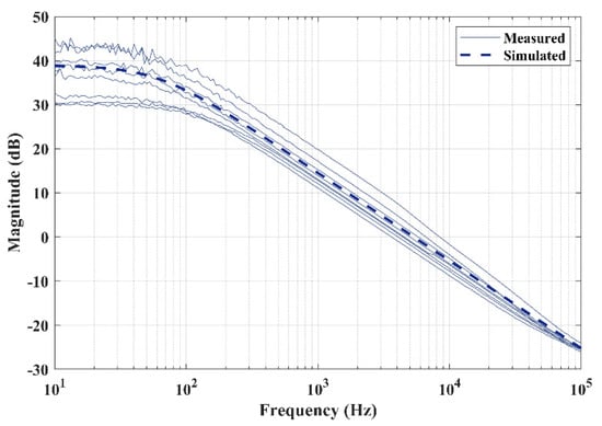 The measured open-loop Bode plots (magnitude and phase) of a representative OTA sample is depicted in Figure 3 while Figure 4 shows the measured gain for all the samples superimposed to the simulated one. Table 2 summarizes the measured main performance metrics averaged over the ten samples. The variability of the parameters is evaluated through the relative standard deviation which is lower than about 30% in all cases.