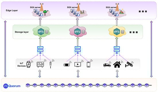 As shown in Figure 4, the IoT access control framework proposed in this paper mainly includes six components: Quorum blockchain, IoT device, inter-planetary file system (IPFS) storage layer, trusted edge computing layer, data owner, and client.