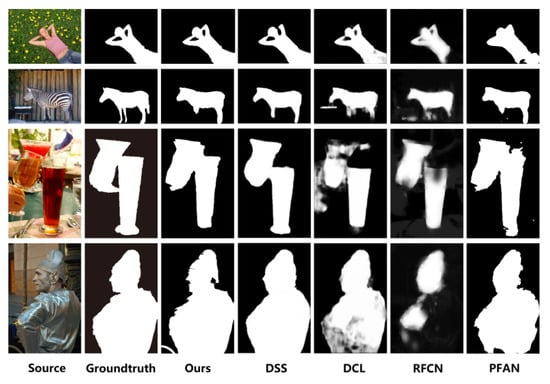 6. Wang, L.; Wang, L.; Lu, H.; Zhang, P.; Ruan, X. Saliency detection with recurrent fully convolutional networks. In European Conference on Computer Vision, Proceedings of the 14th European Conference, Amsterdam, The Netherlands, 11–14 October 2016; Springer: Cham, Switzerland, 2016; pp. 825–841. [Google Scholar]