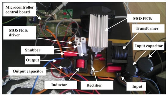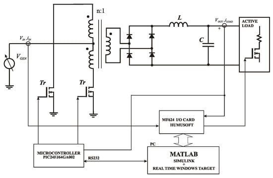In Figure 4, a block diagram of experimental setup for measuring parameters of push–pull converter is shown. Specifications of the converter are as follows: