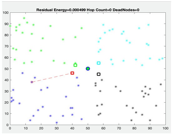 The LEACH proposed by [30] employs a hierarchical structure routing technique. In addition to providing data fusion, the LEACH protocol’s primary purpose is to improve the efficiency with which sensor nodes utilize the power they consume and to maximize the amount of time a network may remain operational by combining many different types of approaches, including cluster-based routing and MAC-layer techniques [31]. The sensor nodes that make up the network are responsible for delegating tasks to one another. For instance, one of the nodes is designated as the cluster head, while the rest are classified as leaf nodes or non-cluster heads. The sensed data by sensor nodes (leaf) are transmitted to the cluster head within a particular cluster group. The cluster head is responsible for transmitting the collected data to the sink node or the base station. Nodes in a cluster consume significantly less power than the cluster head. When the cluster head dies, the leaf nodes lose their ability to communicate.