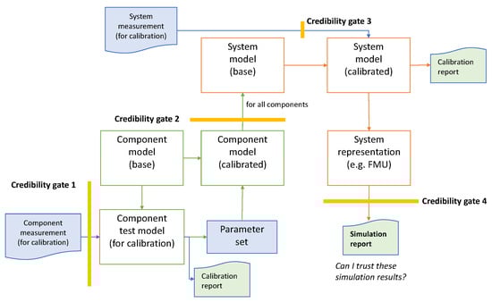 Models are often shared across organizational borders (for example, from supplier to OEM). On the way, the direct access to model sources (for example to internal repositories) and the model history is lost. To avoid this, models have to “carry” documentation “with them”. If only black-box Functional Mock-up Units (FMUs) (https://fmi-standard.org (accessed on 30 July 2022)) [,,] or result data with simulation reports are shared, the requirements on credibility and traceability are even higher.