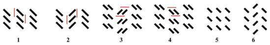 Canonical types of crystal packages of planar conjugate unsaturated molecules; the segments represent lateral projections of planar conjugate unsaturated molecules, while the brackets show parallel dimer pairs. Reprinted from [147], with permission from Springer Nature.
