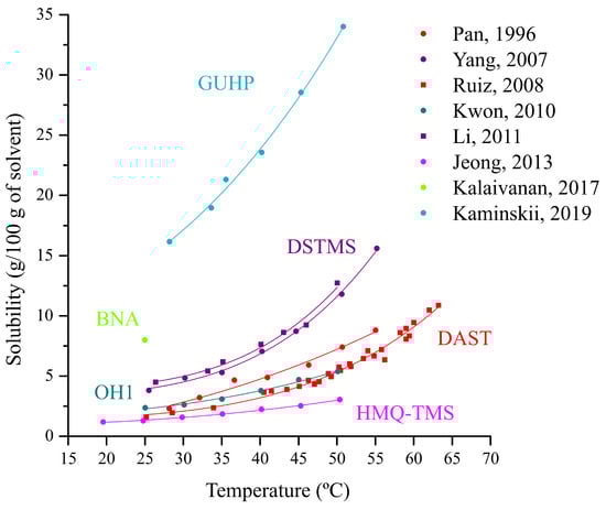 - Sun, Z.; Chen, T.; Luo, J.; Hong, M. Nucleation kinetics and growth of high-quality DAST crystals with the aid of activated carbon as the adsorbent to micro-crystals in solutions. J. Cryst. Growth 2011, 328, 89–94. [Google Scholar] [CrossRef]