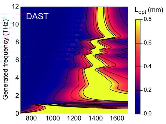 Terahertz (THz) radiation currently has a huge number of applications, among which are: the spectroscopy of a medium whose rotational and vibrational resonances fall into the THz frequency range [1]; 2D and 3D visualization of materials sensitive to terahertz radiation but not to visible (VIS) or infrared (IR) radiation [2,3]; non-invasive medical diagnostics [4], which is possible due to the low energy of a terahertz photon, and several others. Great efforts of various scientific groups have been aimed at creating THz radiation sources that generate single-cycle superintense pulses. Such sources can generate radiation both with a wide spectral band—useful for spectroscopic problems, and with a huge peak pulse field—necessary for nonlinear terahertz applications. In this regard, nonlinear organic crystals with second-order optical nonlinearity seem promising. Due to their high nonlinear optical susceptibility and ultrafast nonlinear response, they are undoubtedly attractive for various applications of THz photonics.