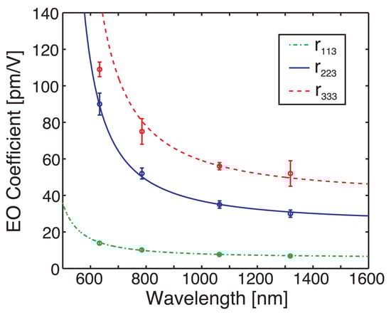 - Korn, D.; Jazbinsek, M.; Palmer, R.; Baier, M.; Alloatti, L.; Yu, H.; Bogaerts, W.; Lepage, G.; Verheyen, P.; Absil, P.; et al. Electro-optic organic crystal silicon high-speed modulator. IEEE Photonics J. 2014, 6, 2700109. [Google Scholar] [CrossRef]