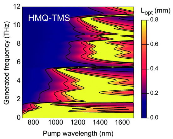 - Brunner, F.D.; Lee, S.H.; Kwon, O.P.; Feurer, T. THz generation by optical rectification of near-infrared laser pulses in the organic nonlinear optical crystal HMQ-TMS. Opt. Mater. Express 2014, 4, 1586–1592. [Google Scholar] [CrossRef]