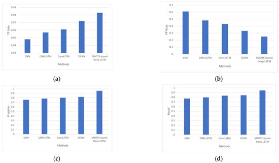 (a) Analysis based on TP Rate, (b) analysis based on FP Rate, (c) analysis based on precision, and (d) analysis based on recall.