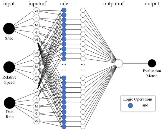 The “outputmf” layer uses weighted average method to consider the influence of each fuzzy rule comprehensively. The output fuzzy evaluation metric f is calculated by