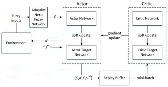 Figure 3 shows the training structure of the proposed fuzzy reinforcement learning. In each episode during the training process, users’ positions and velocities are randomly reset to reset the environment. In each training step, the three fuzzy inputs are obtained from the environment and the state is obtained based on Equation (8). In order to speed up training, is normalized to get