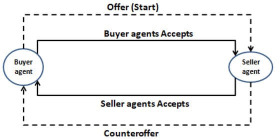 Negotiation is an effective approach for social interaction and diverse parties use it as a resolving dispute mechanism [,]. Through an exchange of opinions, the parties aim to reach an agreement that satisfies all. This paper asserts that negotiation is an effective mechanism for finding a solution between opponents in various domains []. For example, negotiation is used in politics to find an agreement point between opponents []. Business partners negotiate deals and agreements etc. []. This paper focuses on the buying and selling process between software agents for the purpose of automating the negotiation process.