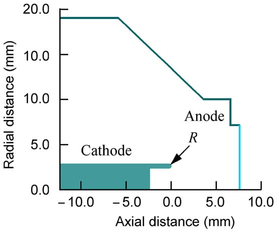 Almost complete agreement is reached at the exponent β = 0.54, i.e., at a value close to 0.5, corresponding to distribution (3). Note also that formula (4) gives ~610 kV/cm for the field strength at the cathode, and the best approximation with β = 0.54 gives ~800 kV/cm. These values are close to the numerically calculated value of ~700 kV/cm near the cathode edge. All this testifies to the applicability of the simplified model geometry of the problem (Figure 1) to the description of real experiments.