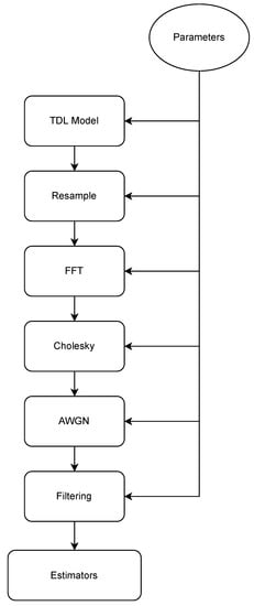 The wireless channel is generated according to the Tapped Delay Line “TDL-D” model described in []. It is a statistical channel model and consists of a set of paths with a normalized delay and power, which can be tuned to account for different propagation conditions. In particular, the channel model accounts for multipath Rice fading, i.e., the Rice factor and the DS are the tuning parameters of the model.