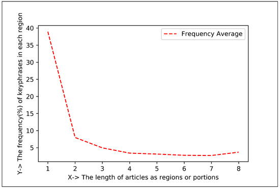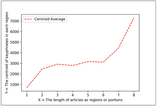 This section carefully examines the experiment’s findings. The proposed method splits the document length into eight (8) regions to analyze the keyphrase centroid and frequency (KCF). When a document’s number of regions is increased by more than eight, the first region has a lower keyphrase frequency value as well as a lower centroid value than the eight-region. Likewise, if the region numbers are fewer than eight regions, the first area or region has a higher keyphrase frequency value as well as a higher centroid value than the eight regions. Since the proposed method aims to show the centroid and frequency of keyphrases from articles based on each region, the model considers the article length in eight regions instead of expanding or reducing the area/region. The two most important parts of this section are analyzing the results and comparing the proposed method to other methods. These two parts are explained in the next subsection.