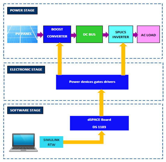 This article proceeds in the following sections. First, the SPUC5 inverter associated with the proposed control technique is presented in Section 2. Afterward, the proposed PV system is described in Section 3. Subsequently, the results of the simulation are analyzed in Section 4. Finally, the experimental validation is carried out in Section 5.