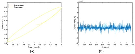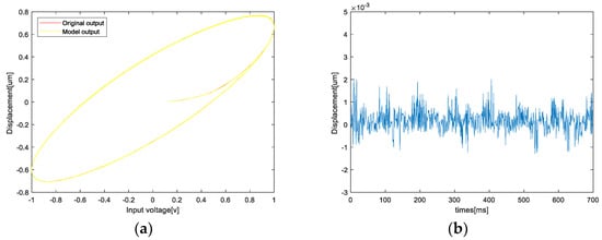 When the input frequency f = 100 Hz: (a) hysteresis model; (b) modeling error.