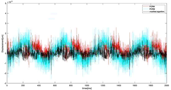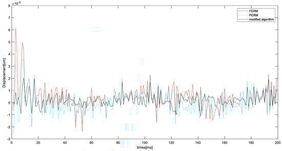 According to the data in the table, when the frequency is 5 Hz–100 Hz, the max-error distribution of the hysteresis model established by FCRM is between 0.0027 μm and 0.0060 μm, and the RMSE is distributed between 0.0247 and 0.1123. As the TS fuzzy model established by traditional FCRM is sensitive to noisy data and uses traditional membership function, the hysteresis model established by traditional FCRM has large errors and is relatively scattered. The max-error distribution of the hysteresis model established by PCRM algorithm is between 0.0025 μm and 0.0039 μm, and the RMSE is between 0.0253 and 0.1329. Because the objective function of PCRM algorithm is improved on the basis of FCRM algorithm, the maximum error of the hysteresis model established by the PCRM algorithm was obviously improved. Moreover, the traditional membership function still makes the error distribution more scattered. The max-error distribution of the model built by the improved algorithm in this paper is between 0.0015 μm and 0.0028 μm, and the RMSE distribution is between 0.0136 and 0.0610. Compared with the previous two algorithms, this method proposes a new objective function based on FCRM, which largely overcomes the influence of noise points. Moreover, it introduces a new hyperplane membership function. Therefore, the model has the smallest error; the error distribution is more concentrated; the modeling precision is obviously improved.