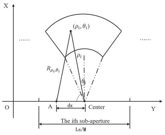 Each sub-aperture imaging is based on the same principle as the original BP imaging. As shown in Figure 3, the ith sub-aperture imaging result  can be expressed as:
